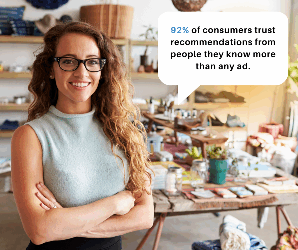 A staggering 92% of consumers trust recommendations from friends, family, and people they know—far more than any other form of advertising. 70% say they trust online consumer opinions above all else. Sprout Social