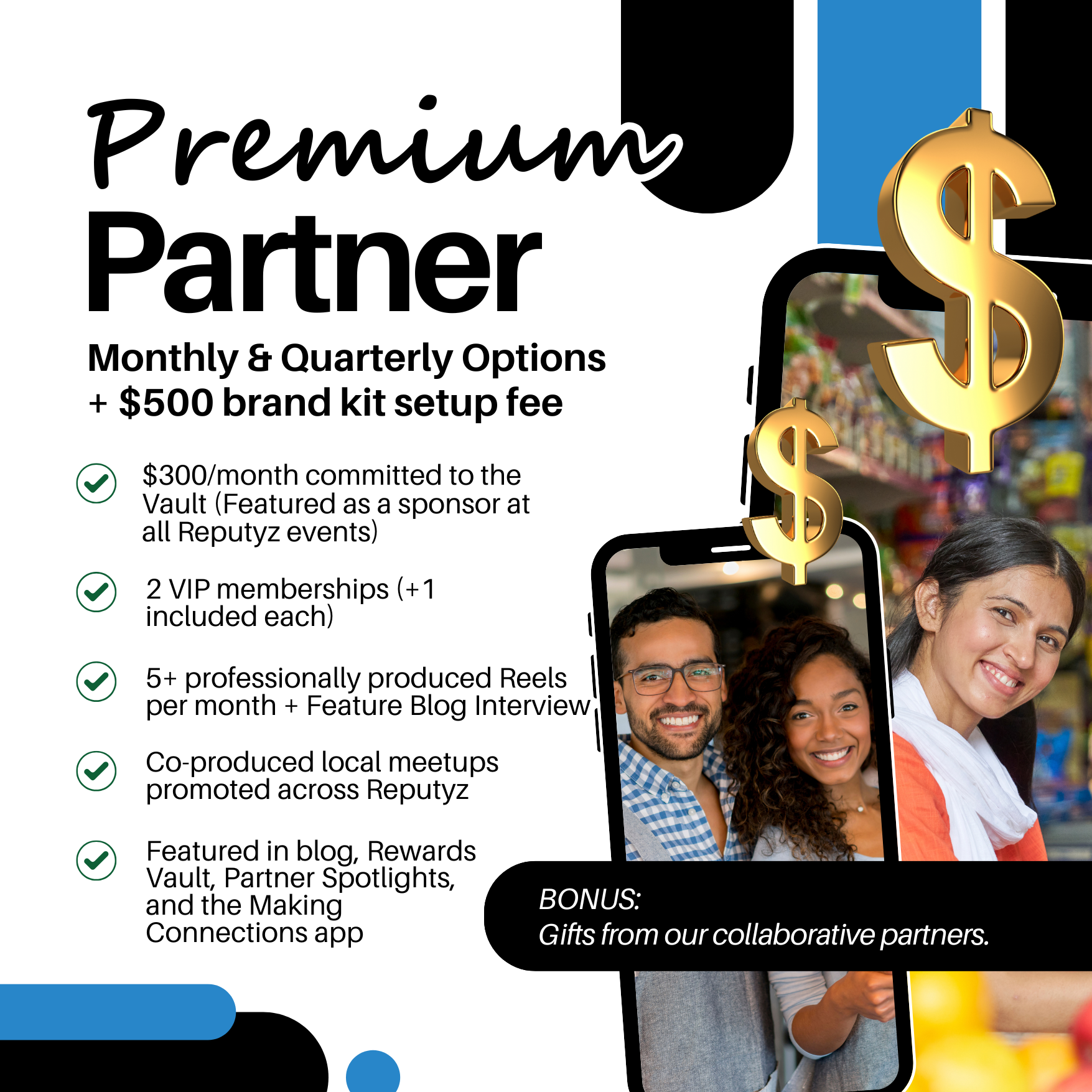 ✔ Premium Partners receive six hundred in monthly Vault value